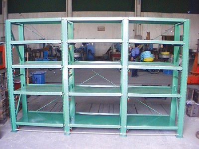 模具貨架采用100槽鋼,由軋機(jī)一次軋制而成。抽屜板結(jié)構(gòu)一般采用矩形管與4.0彎曲件焊接而成。導(dǎo)槽由4.0鋼板彎曲而成。頂部和底部用橫梁連接,頂部用屋頂覆蓋,可以儲(chǔ)存貨物。主要適用于各種模具物品的存放。按承載能力可分為輕模貨架和重模貨架。貨架頂部設(shè)有移動(dòng)式起重車,方便模具的吊裝。常見的貨架表面處理方案有噴漆、噴涂、熱鍍鋅和冷鍍鋅。