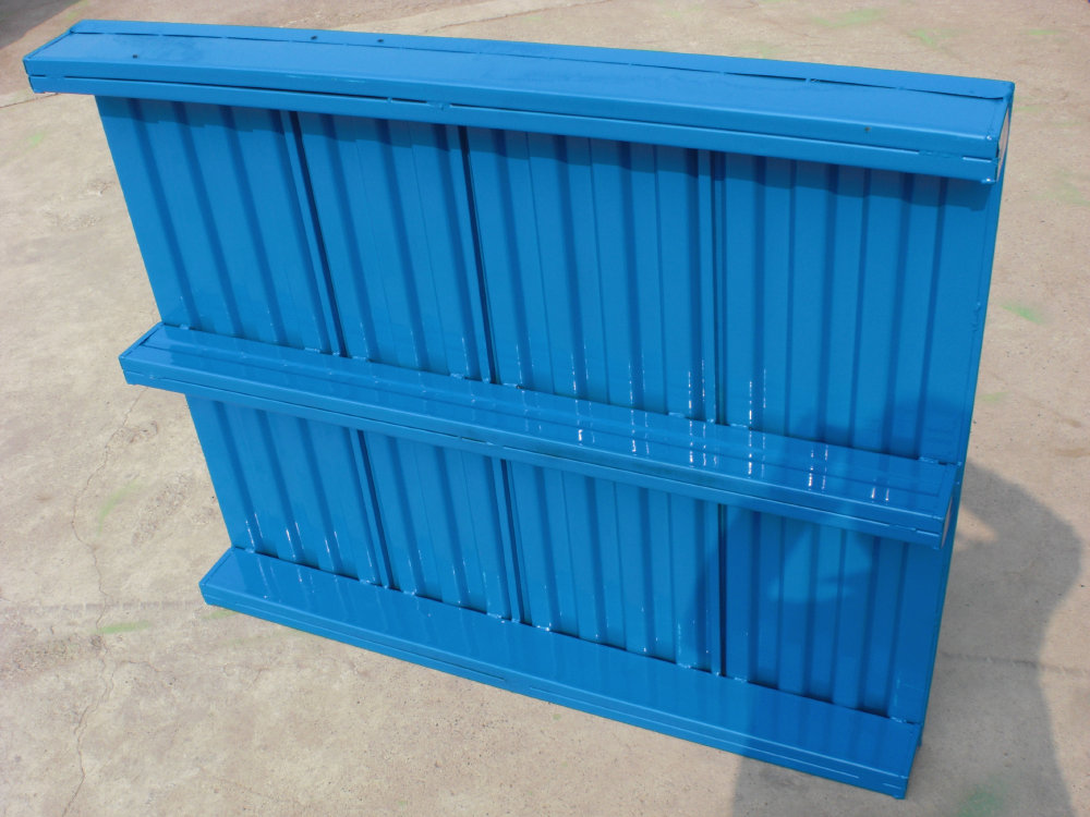鋼制托盤(鋼托盤)適用于叉車操作,便于取貨。主要用于多用途地面?zhèn)}儲(chǔ),倉(cāng)儲(chǔ)貨架和貨物運(yùn)輸,周轉(zhuǎn)等超輕金屬托盤系列。組裝,堆疊,搬運(yùn)和運(yùn)輸作為單元負(fù)載的水平平臺(tái)裝置。它是業(yè)內(nèi)重要的儲(chǔ)運(yùn)輔助設(shè)備之一。主要材料是鋼或鍍鋅鋼。它由特殊設(shè)備組成。各種型材相互支撐,加強(qiáng)鉚釘連接,然后通過(guò)CO2氣體保護(hù)焊焊接。